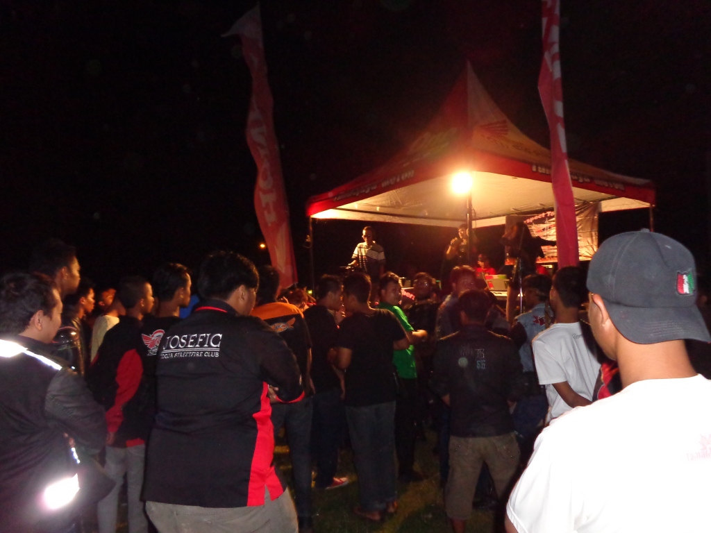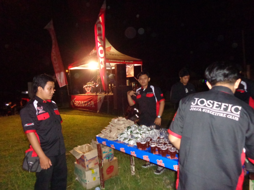 Lapangan rumput area Pantai Parangkusumo Yogyakarta, kemarin Sabtu, 1 Maret 2014 menjadi tempat penyelenggaraan perayaan Setahun Josefic (Jogja Streetfire Club) sebuah klub sepeda motor Honda CB150 Streetfire di Yogyakarta.